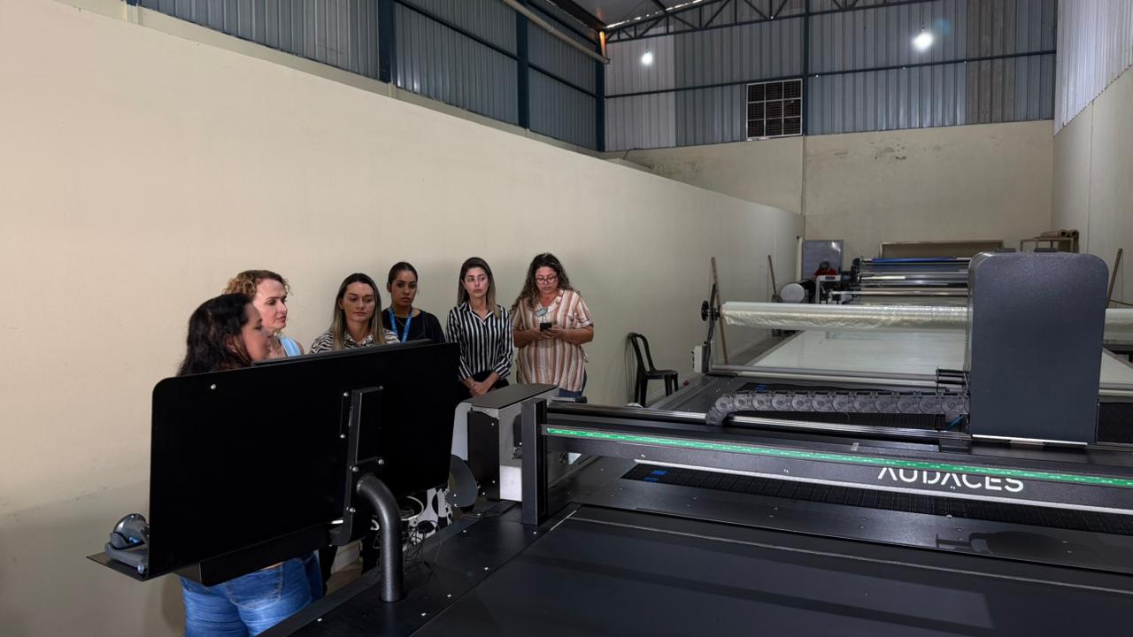 A primeira-dama e secretária municipal de Assistência Social de Cristalina, Samara Luzzi Massa, esteve em Hidrolândia, na Região Metropolitana de Goiânia, para conhecer a Audace, máquina de corte automatizado que realiza cortes precisos em qualquer tipo de tecido. A visita técnica da primeira-dama teve por objetivo conhecer de perto a estrutura e os resultados obtidos pelo equipamento, que foi garantido para Cristalina pelo deputado estadual Amilton Filho (MDB), que articulou política e institucionalmente junto à Secretaria Estadual da Retomada para que o município fosse contemplado com o equipamento, viabilizando junto ao Governo do Estado essa importante conquista para a cidade.