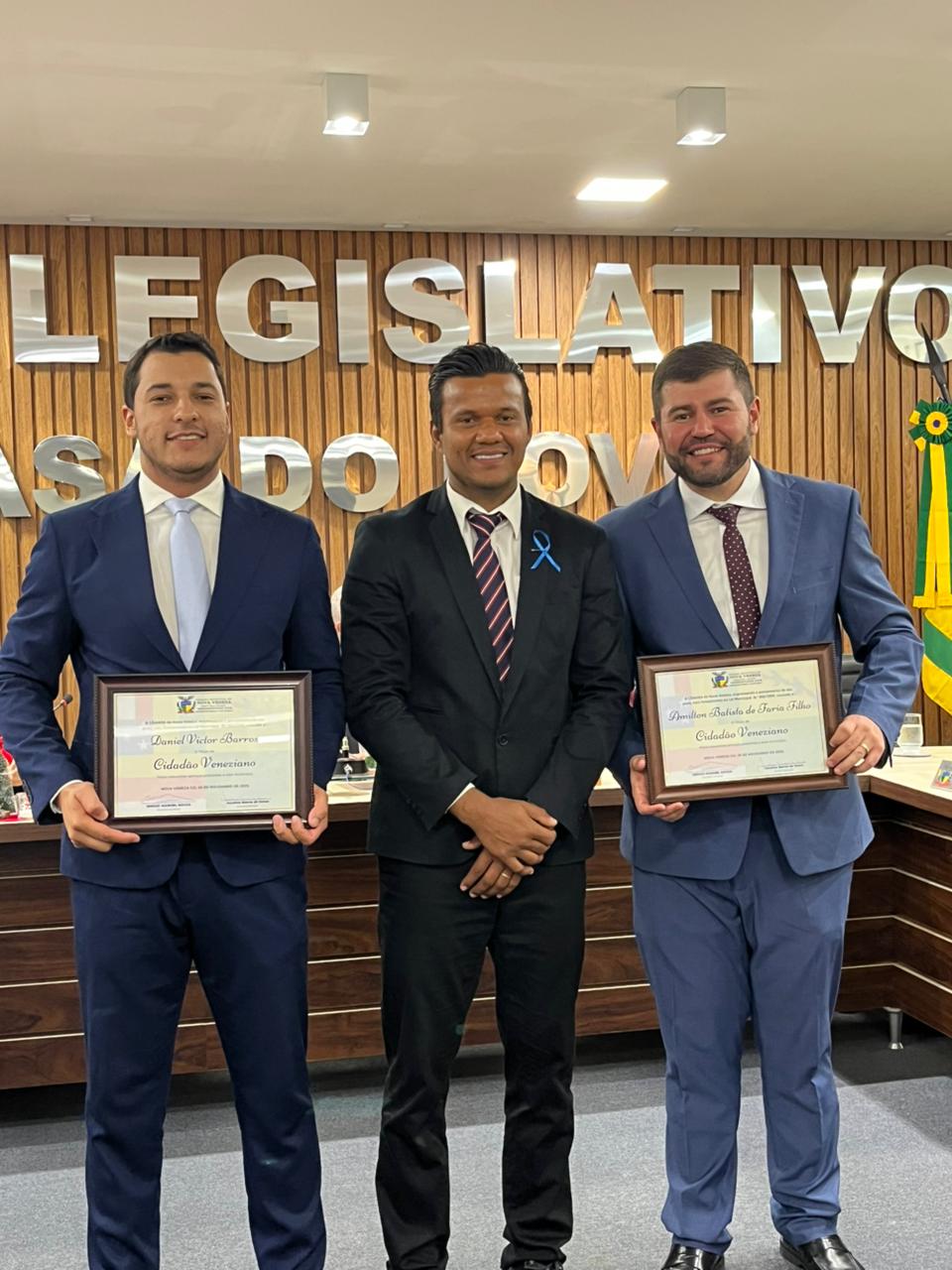O deputado estadual Amilton Filho (MDB) recebeu, na noite desta quarta-feira, dia 26 de novembro, o título de cidadão do município de Nova Veneza, no Centro do Estado. A homenagem foi proposta pelo vereador Juscelino Barros de Sousa, o Celino (PSDB), e aprovada por unanimidade no plenário da Casa. “Essa homenagem de me tornar um cidadão nova-venezino aumenta a minha responsabilidade e o meu compromisso em trabalhar mais pelo município, mas ao mesmo tempo me estimula a reforçar o time de deputados engajados em trabalhar e defender os interesses de Nova Veneza, buscando recursos que beneficiem os cidadãos daqui, de quem agora sou conterrâneo”, disse o parlamentar em seu discurso de agradecimento.
